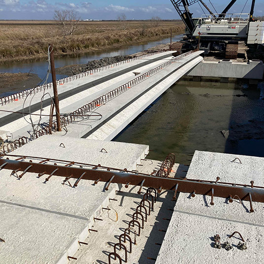 Contract: $6,982,870 Long bridge spans, falsework towers and multi-crane lifts