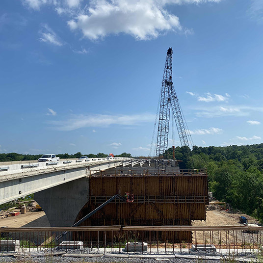 This project includes the construction of a 1,405' long bridge on State Route 13 over the Cumberland River. Work on site began March 12, 2018 and is scheduled to be completed May of 2023. The purpose of the project is to provide a multi-lane highway network link as part of the planned 374 bypass around Clarksville.