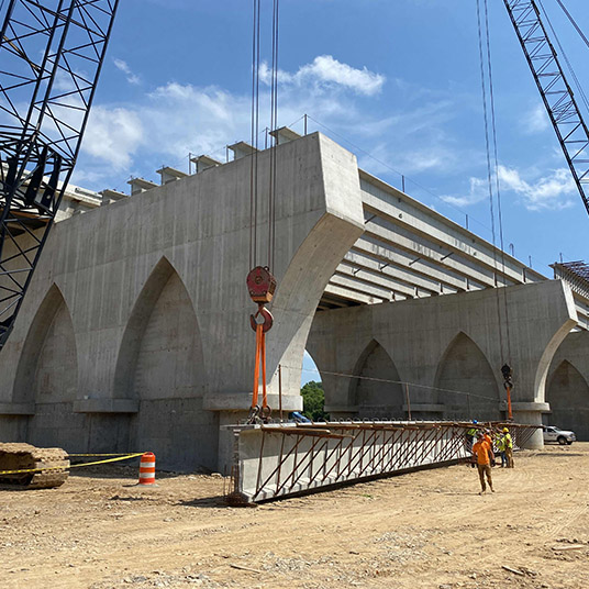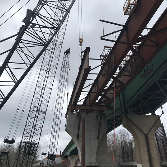 Contract: $6,982,870 Long bridge spans, falsework towers and multi-crane lifts