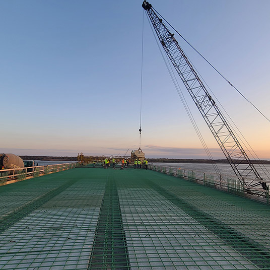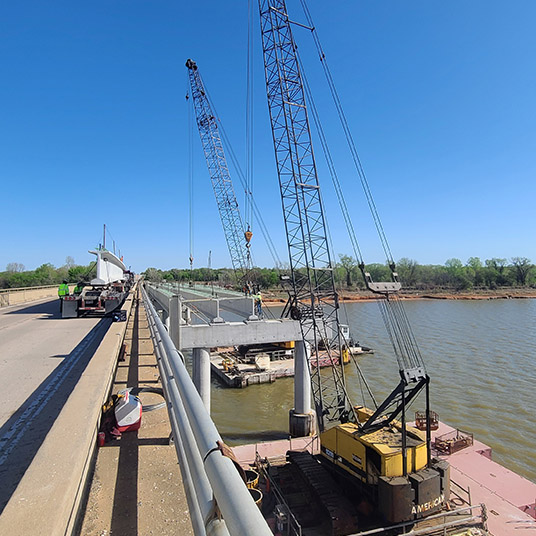 Contract: $6,982,870 Long bridge spans, falsework towers and multi-crane lifts